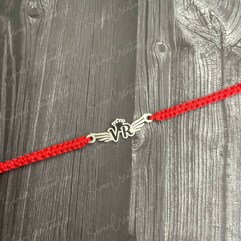 Celebrate the special bond between siblings with our exclusive designer rakhi! Elegantly crafted in Magnolia script font, this rakhi features wings on either side and an enamel finish for added allure. A crown embellishment adds a regal touch to the name.