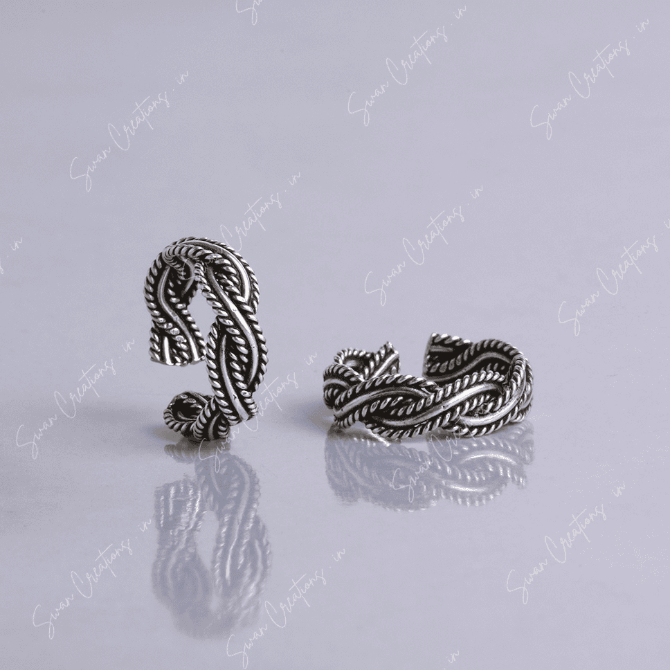 Toe rings are a must have ornament for all the fashonistas who love the combination of trend and tradition. Highlight your tiny members of your foot with our 925 Silver twisted band toe rings. The unique blend of dark and light tones makes it stand out and it is sure to elevate the style of your overall foot.